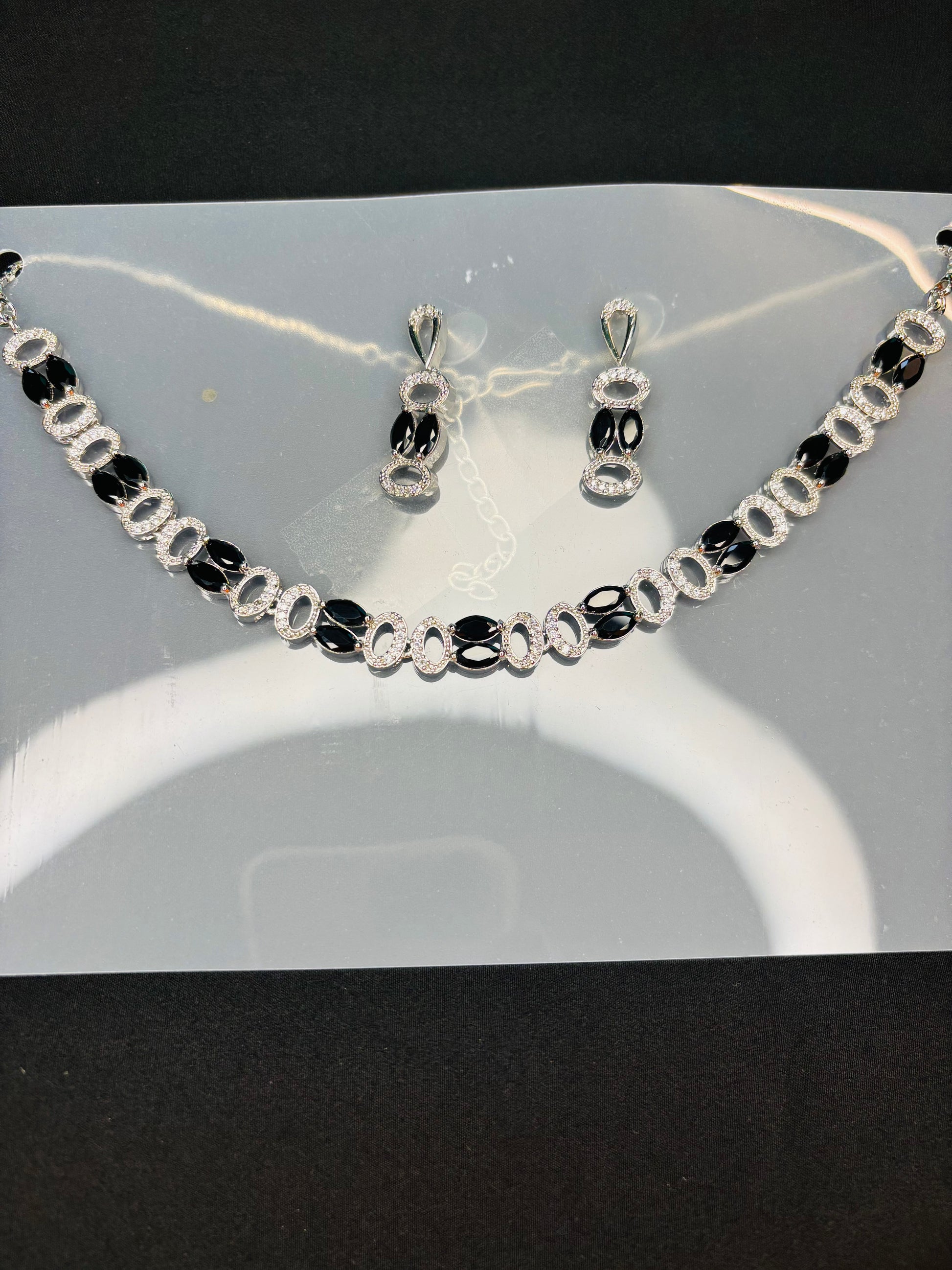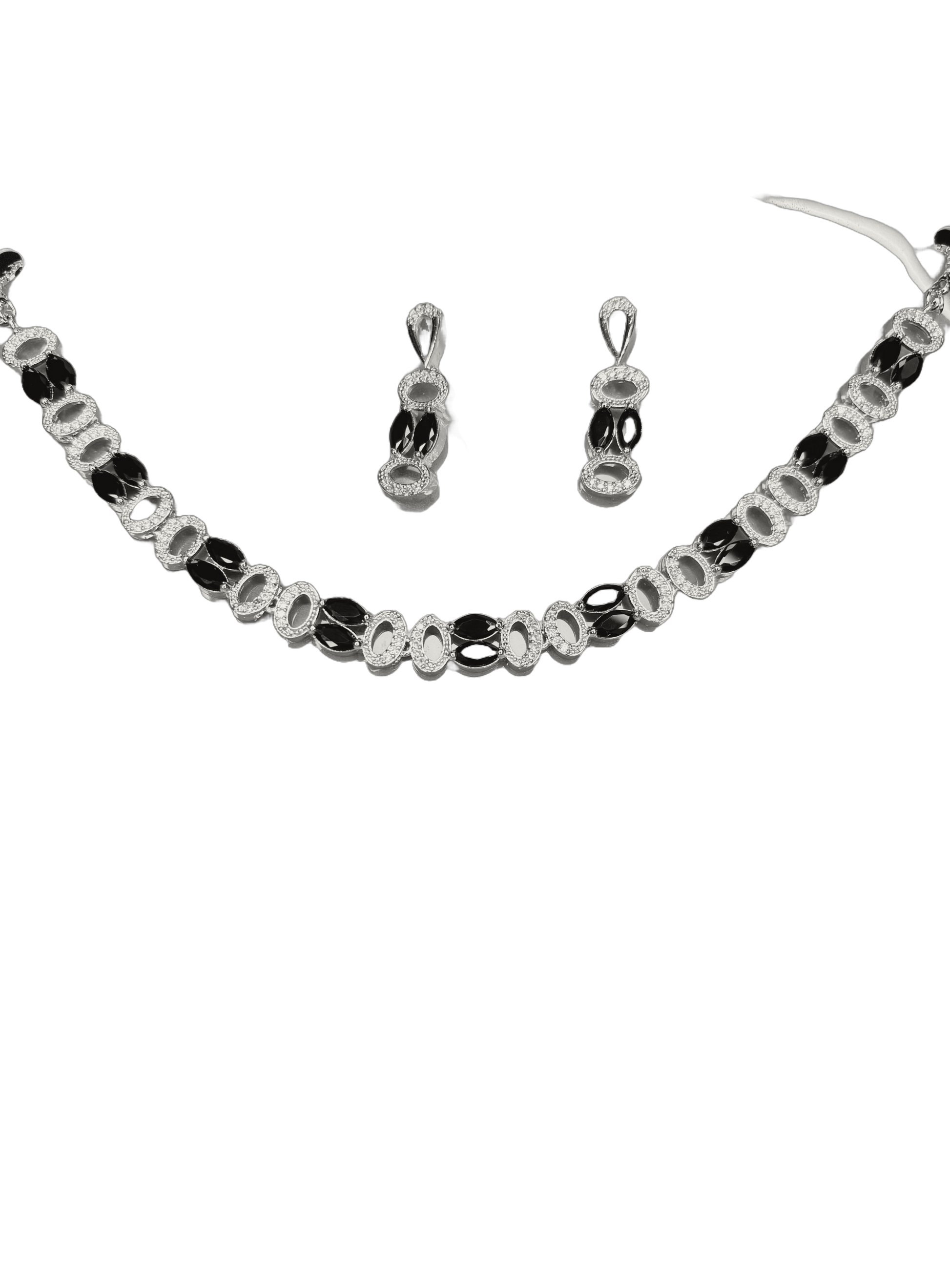 Multi-Color American Diamond Necklace Set – Purple, Green, Black & Silver Elegance
